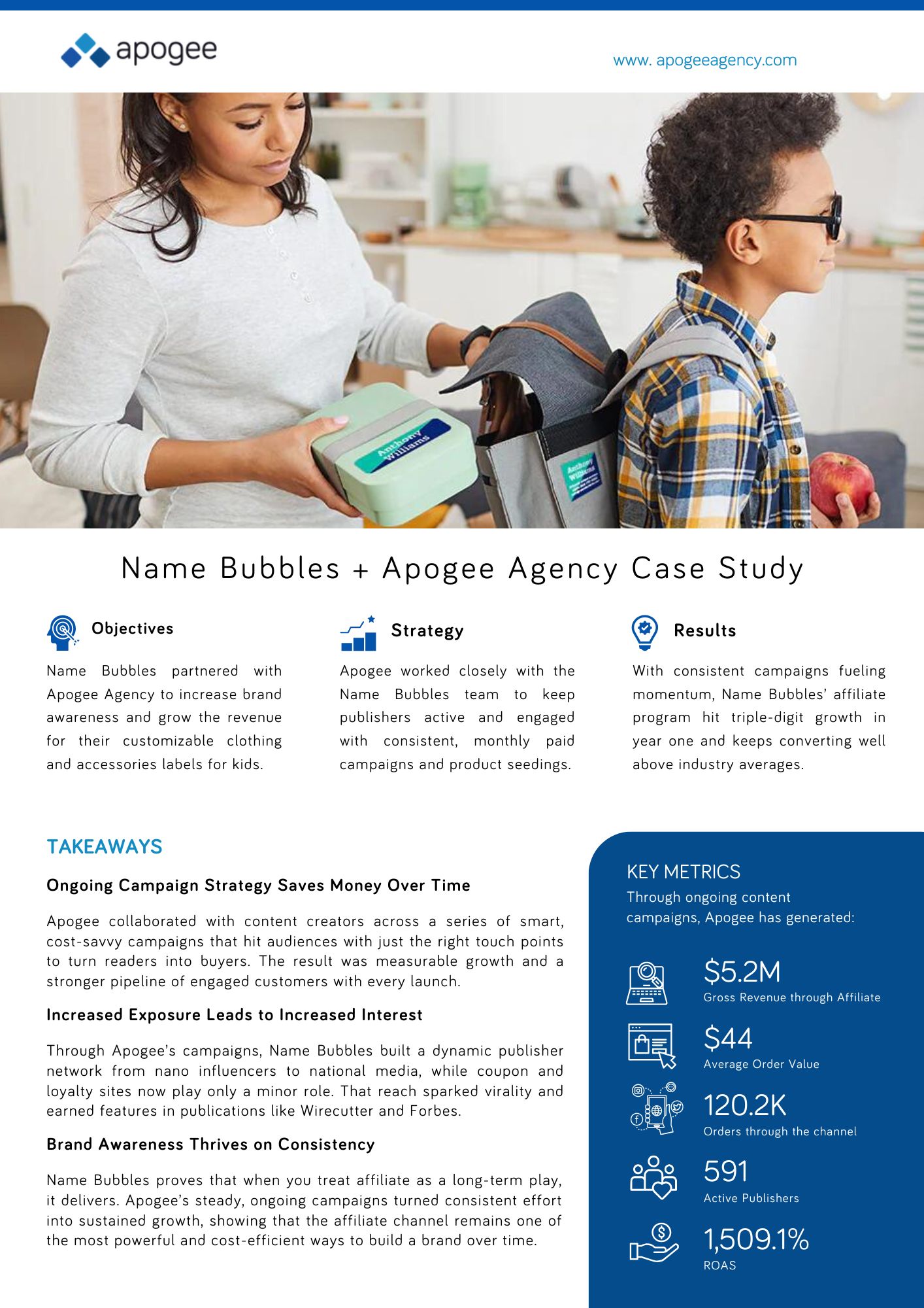 October 22, 2025Apogee Agency and Name Bubbles have shown that long-term, consistent effort can outperform short-term bursts of promotion when managing an affiliate program. When our collaboration began, Name Bubbles was familiar with seeing sales spike during campaigns and fade in the off-season.